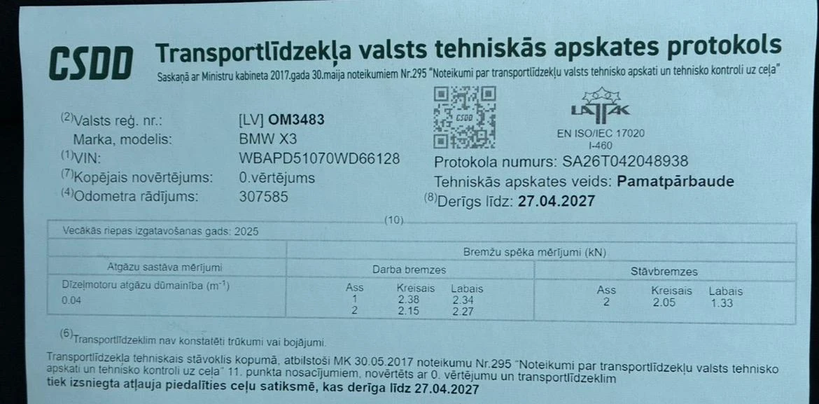 Tehniska apskate:27.04.2027