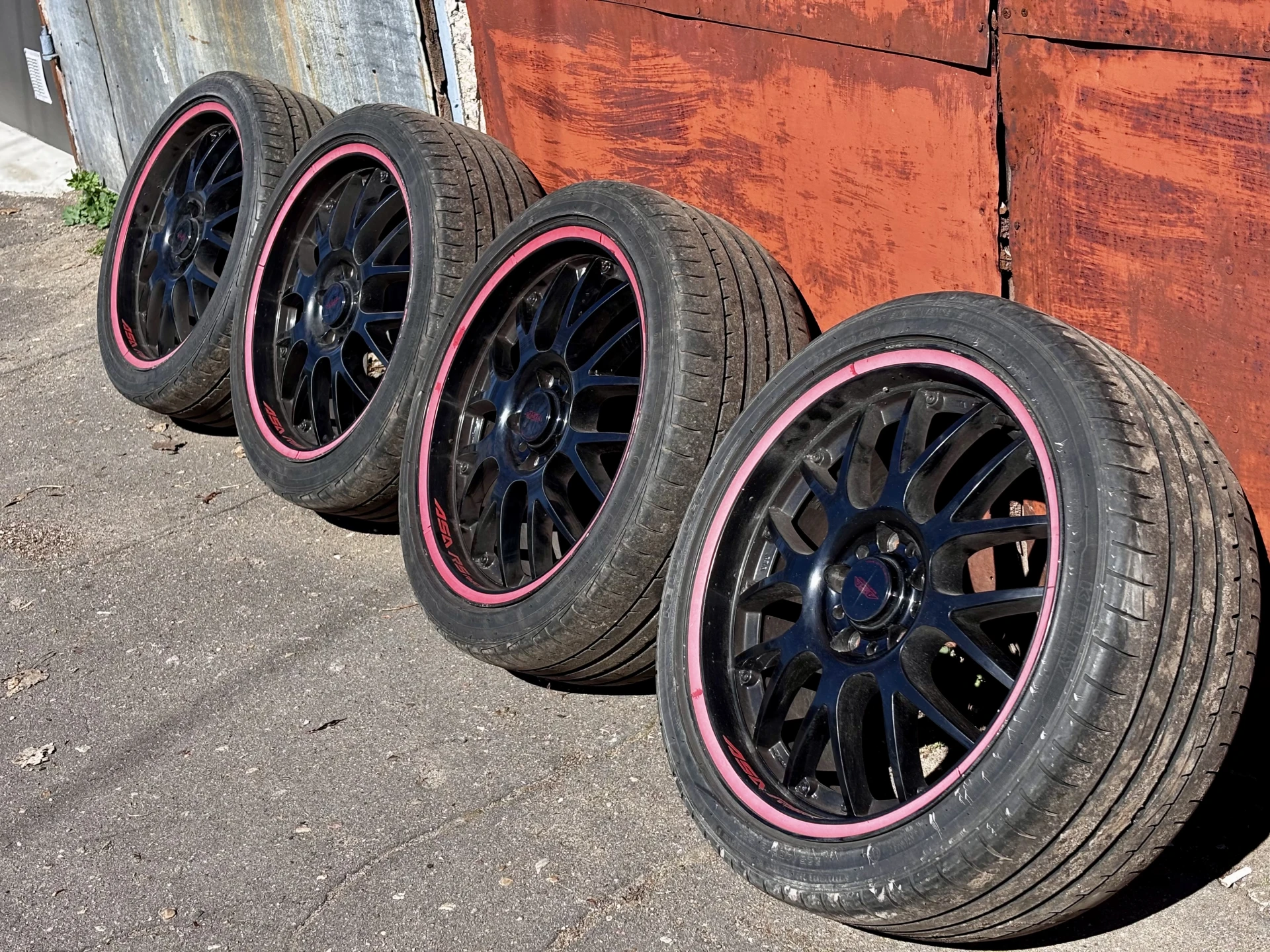 Pārdodu ASA Racing diskus no BBS grupas ar riepām – kvalitatīvi vācu lietie diski, kas auto uzreiz piešķir sportisku un sportisku izskatu. Melni ar sarkanu malu, pamanāms un gaumīgs dizains.